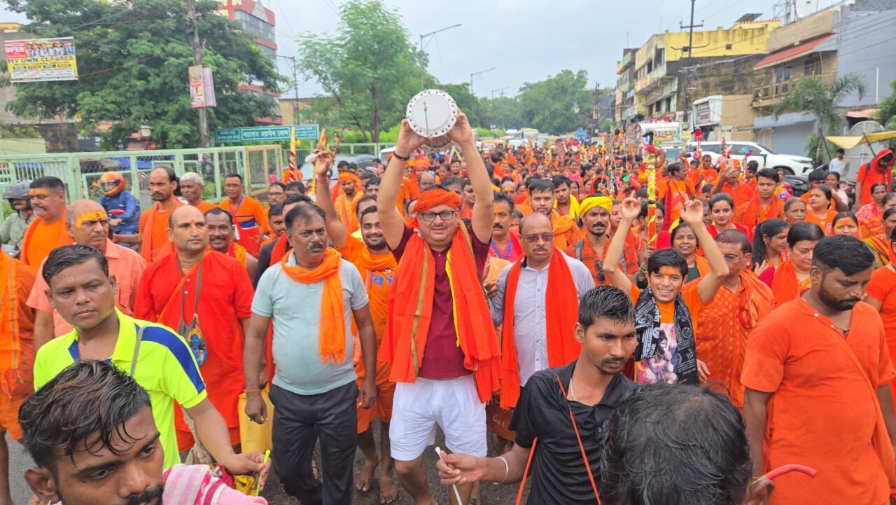 ढोल‚ शंख और मंत्रोच्चार के बीच 1000 कांवरियों का जत्था रवाना