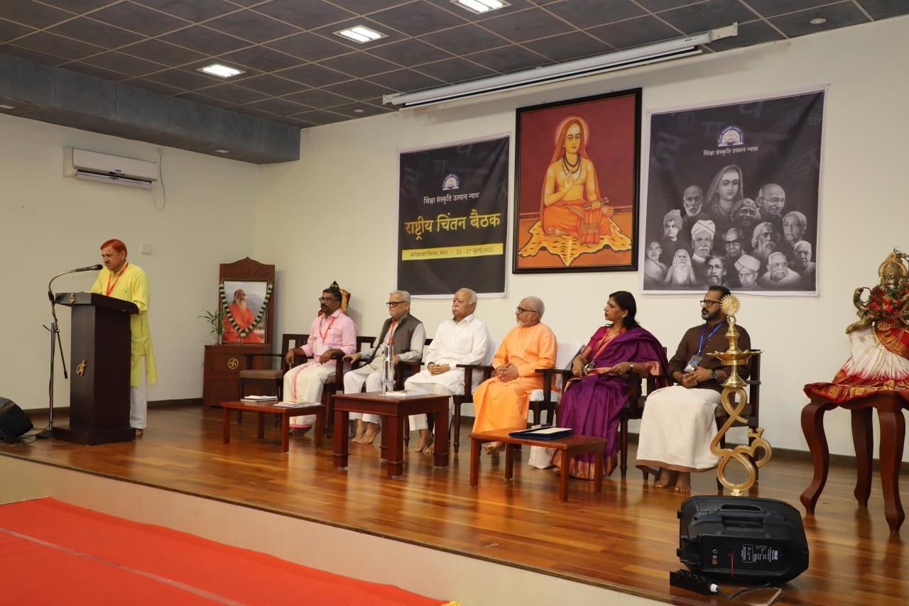 उन्होंने कहा कि भारत में शिक्षा का उद्देश्य केवल जीविकोपार्जन नहीं था, बल्कि मनुष्य को ‘पूर्ण मानव’ बनाने का माध्यम था। हमें इस दिशा में शिक्षा को लेकर जाना है। उद्घाटन सत्र के विषय में जानकारी देते हुए प्रचार प्रमुख अथर्व शर्मा ने बताया कि शिक्षा संस्कृति उत्थान न्यास की इस राष्ट्रीय चिंतन बैठक का उद्घाटन राष्ट्रीय स्वयंसेवक संघ के प.पू. सरसंघचालक डॉ मोहन भागवत जी के कर कमलों से किया गया। इस अवसर पर चिन्मय मिशन के स्वामी विवित्तानंद जी, न्यास की अध्यक्षा डॉ पंकज मित्तल जी, संयोजक ए विनोद जी, चिन्मय मिशन के सुदर्शन जी उपस्थित थे।