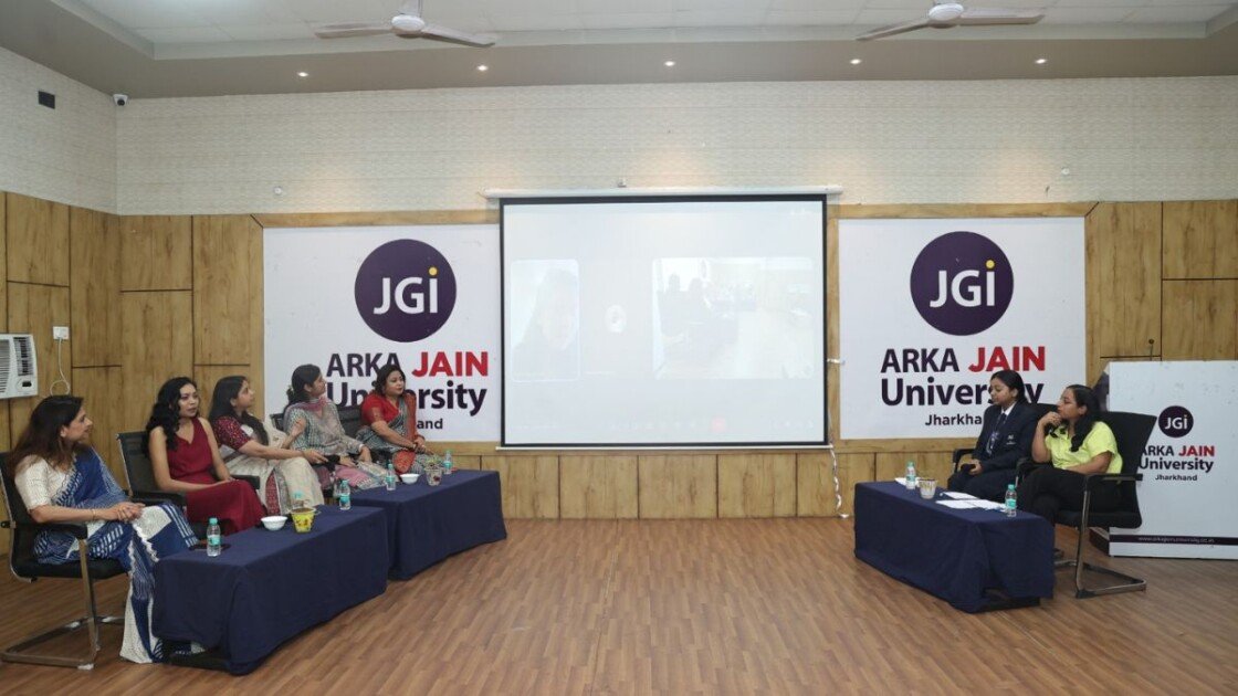 Arka Jain University में महिला उद्यमियों ने छात्राओं को बताए उद्यमिता के गुर, एक्यूएमसी का उद्घाटन