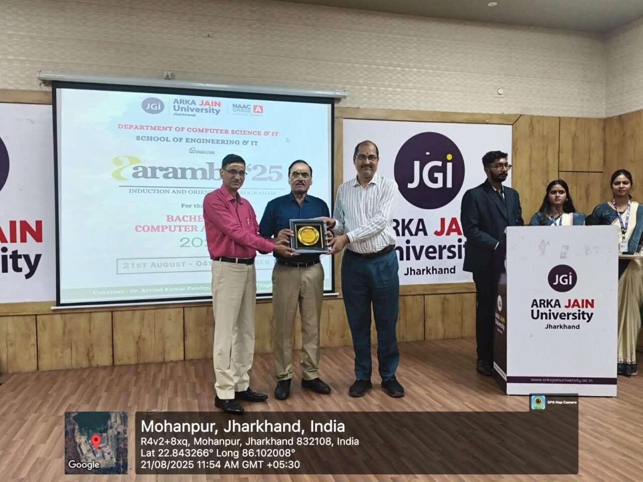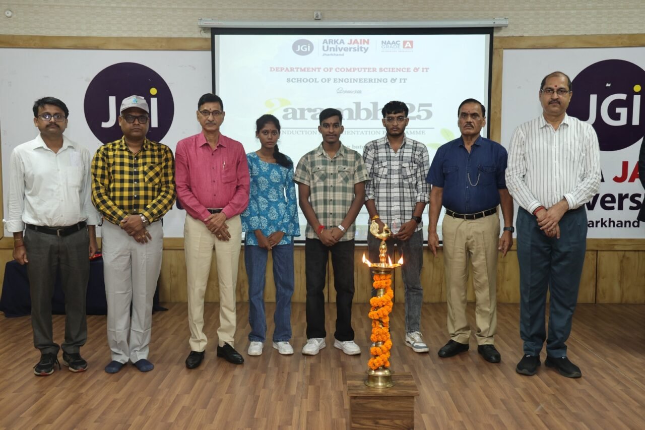 जमशेदपुर, अगस्त 2025: अर्का जैन विश्वविद्यालय के कंप्यूटर विज्ञान एवं सूचना प्रौद्योगिकी विभाग ने 21 अगस्त 2025 को नव प्रवेशित बीसीए 2025 बैच के लिए ओरिएंटेशन-सह-प्रेरण कार्यक्रम का सफलतापूर्वक आयोजन किया, जिसमें लगभग 300 छात्रों का जीवंत शैक्षणिक समुदाय में स्वागत किया गया।