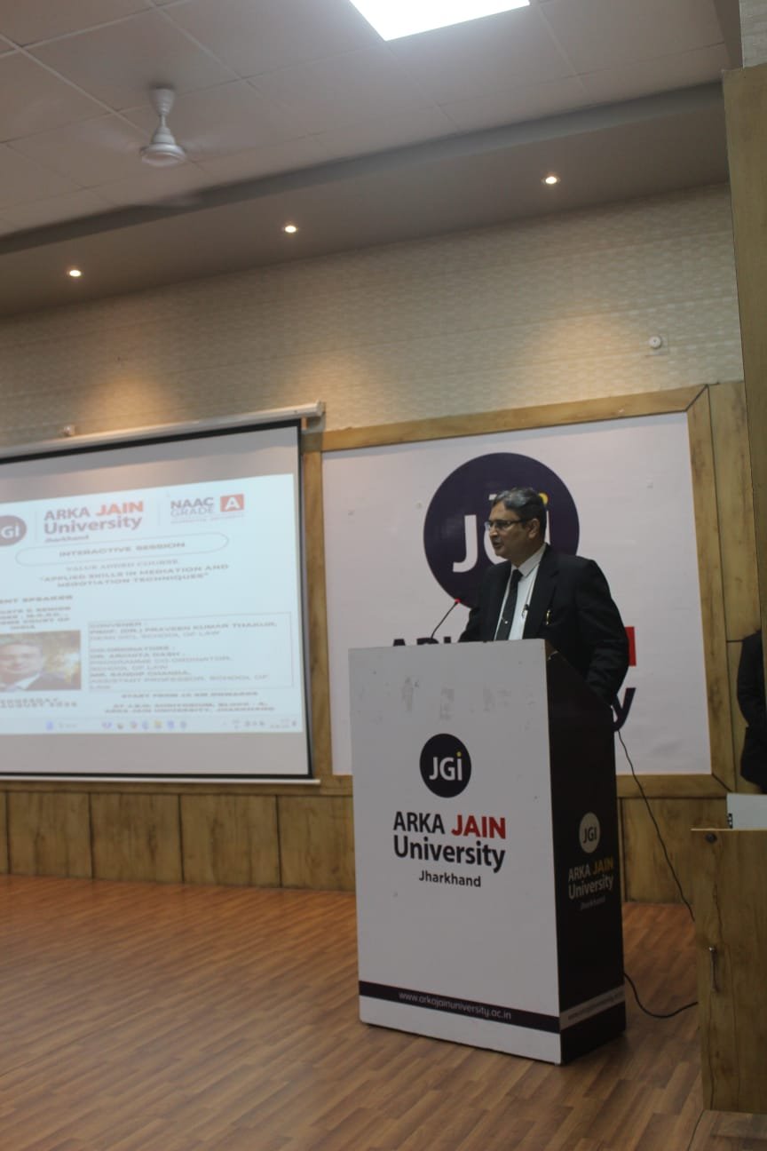 जमशेदपुर स्थित अरका जैन यूनिवर्सिटी के स्कूल ऑफ लॉ ने छात्रों को समकालीन कानूनी कौशल से लैस करने के उद्देश्य से एक महत्वपूर्ण इंटरैक्टिव सत्र का आयोजन किया। जे.ई.एच. ऑडिटोरियम में आयोजित इस सत्र का विषय था, “एप्लाइड स्किल्स इन मेडिएशन एंड नेगोटिएशन टेक्निक्स”। यह सत्र विश्वविद्यालय के वैल्यू एडेड कोर्स का हिस्सा था, जिसमें विद्यार्थियों को मध्यस्थता (Mediation) और वार्ता (Negotiation) के व्यावहारिक पहलुओं से परिचित कराया गया।